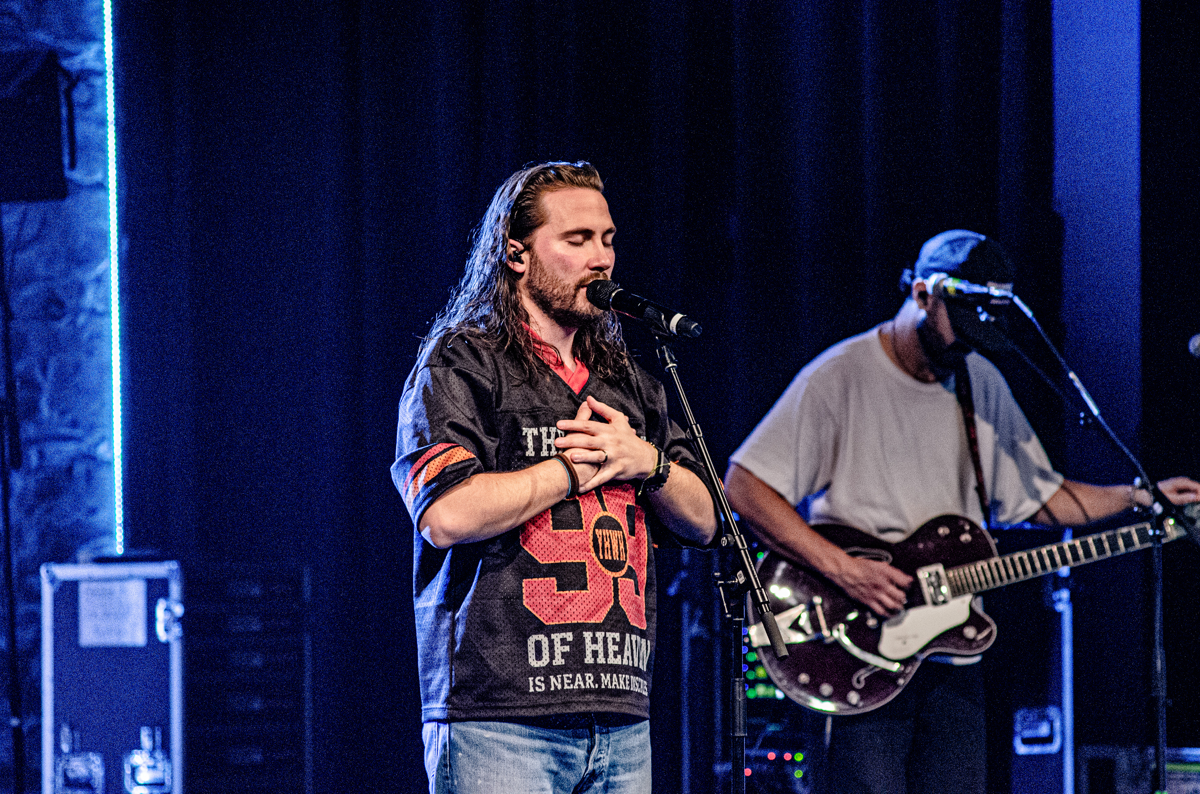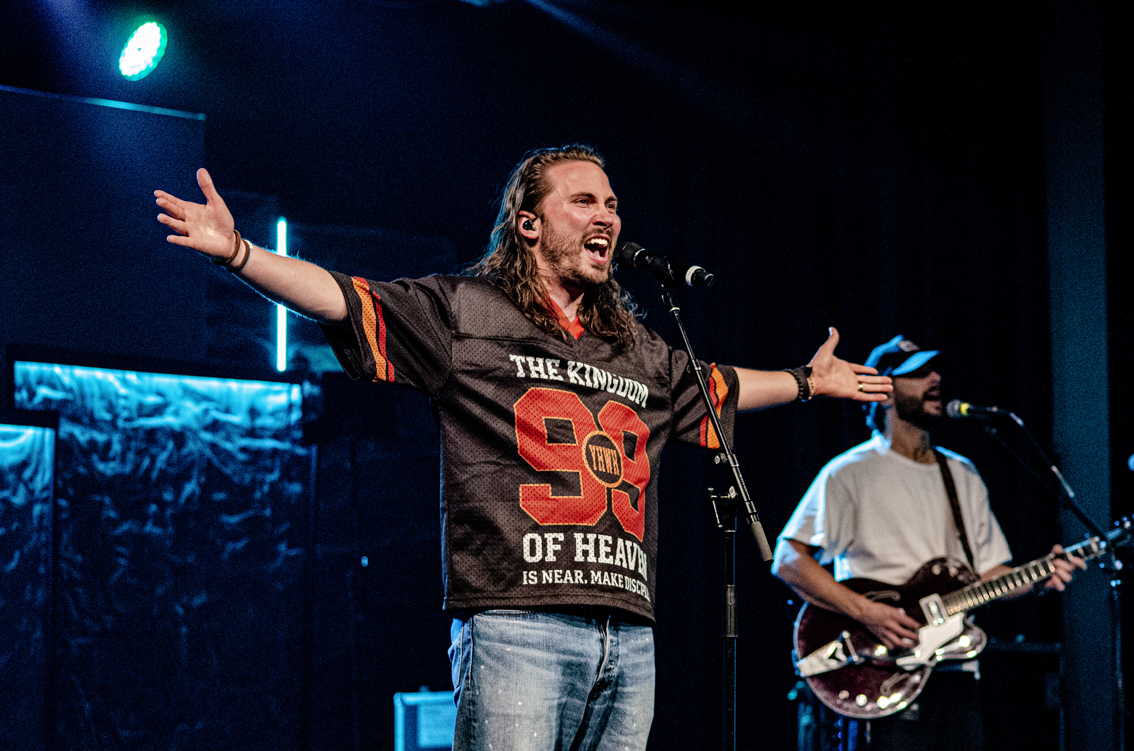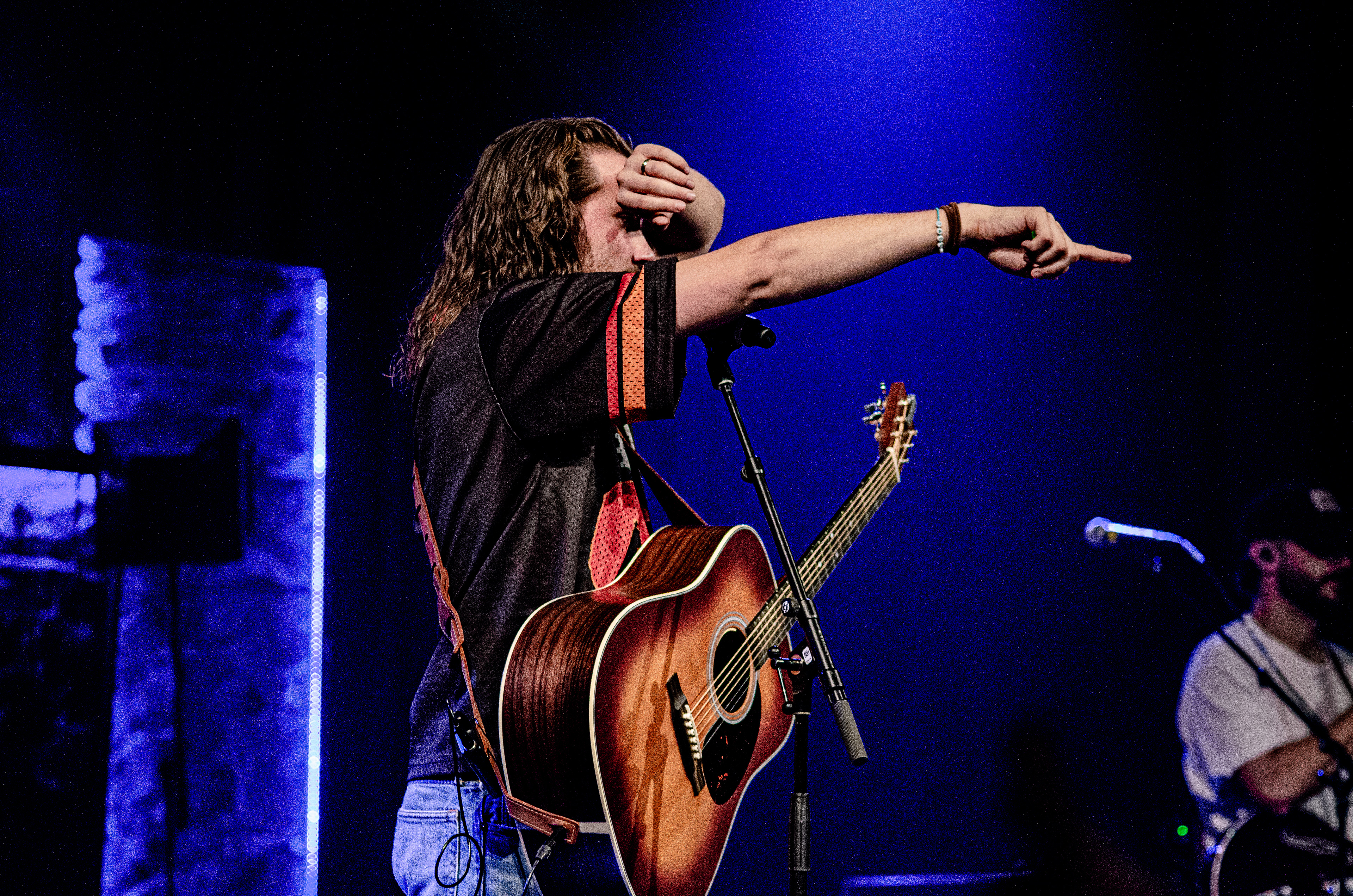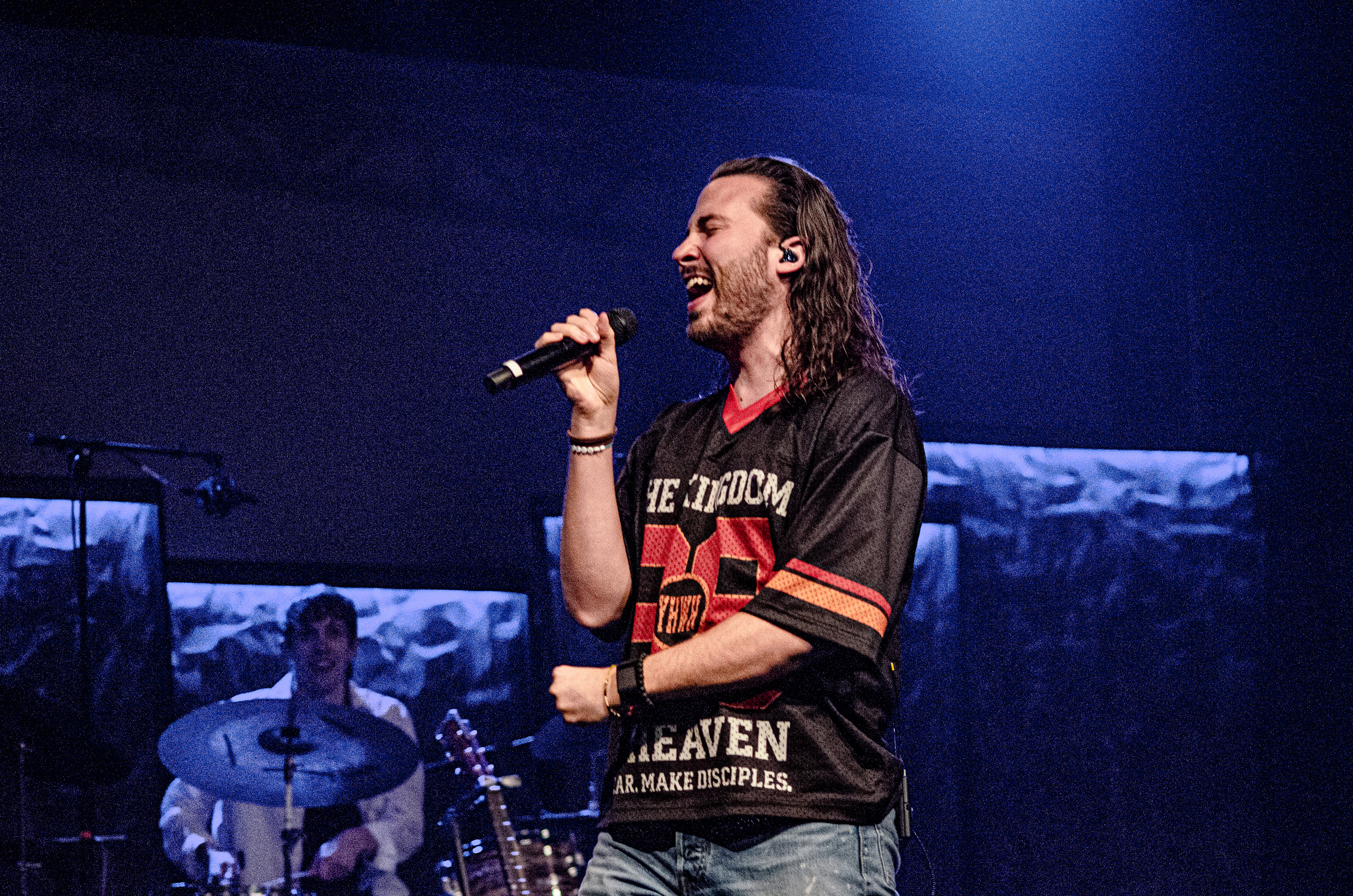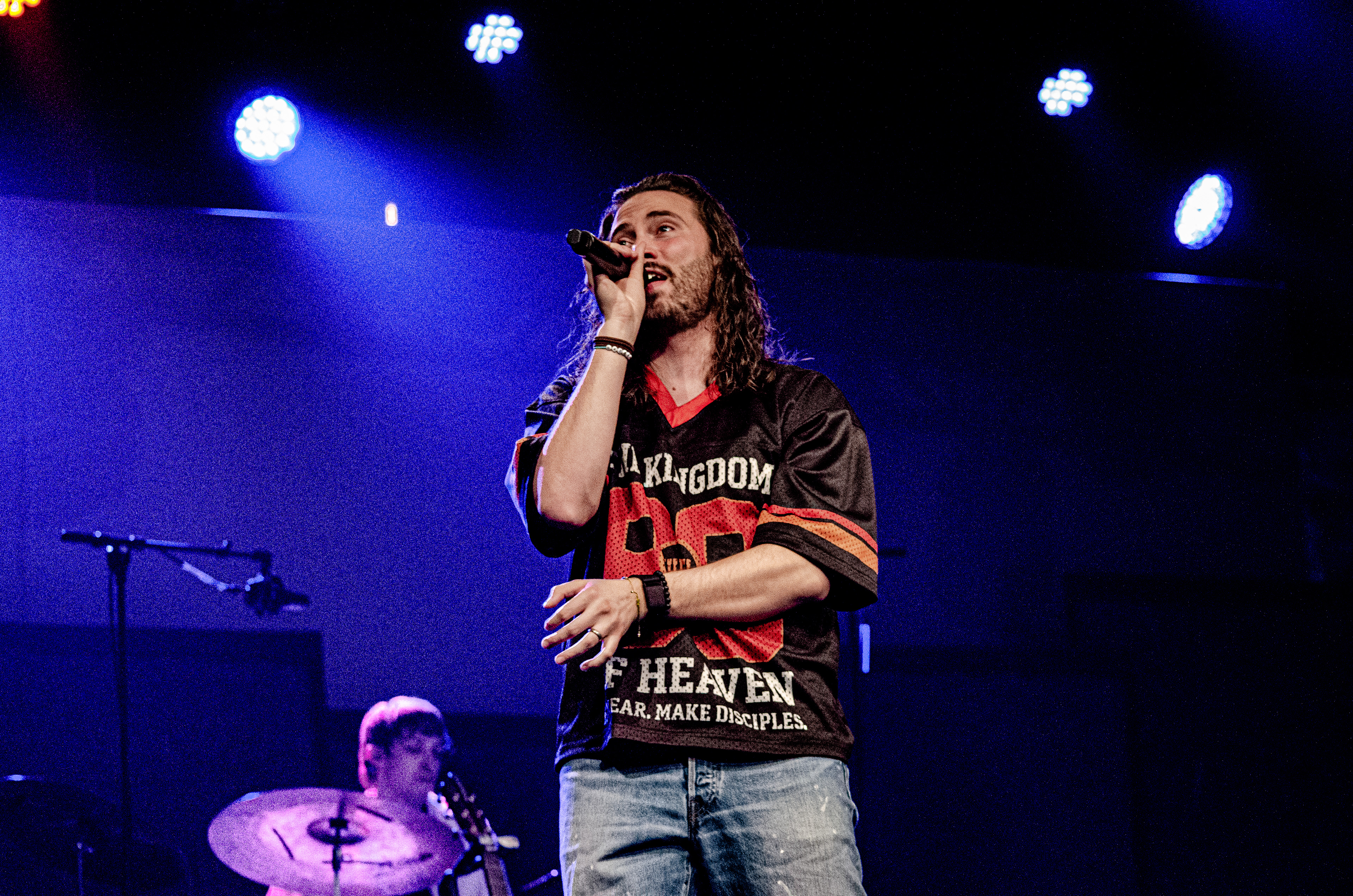 Once Seph took to the stage, the room filled with interchanging blue and orange lights, alongside unmatched vocals. The sound of his acoustic guitar vibrated from floor to ceiling, and the audience joined in as they collectively sang to the opening songs “Running Back To You” and “Steady Love”. Seph acknowledged the fact that his name is complicated, humorously saying that it’s easy to remember by saying “Schlueter Peter”. He also joked about how he is like Brandon Lake, calling himself “Brandon River” (also referring to himself as “Temu Brandon Lake”). He played some newer songs, including collaborations “Already On The Way (with Benjamin William Hastings) and “Cling To The Cross” (with Matt Maher). Charles Weems joined Seph on stage for the latter, offering vocals that complemented the song well. Seph’s newly teased song, “Valley Of Worship”, was included in the set, proving to be one of his best, as he stated “you can build an altar in the valley, because He’s in it with you there”.