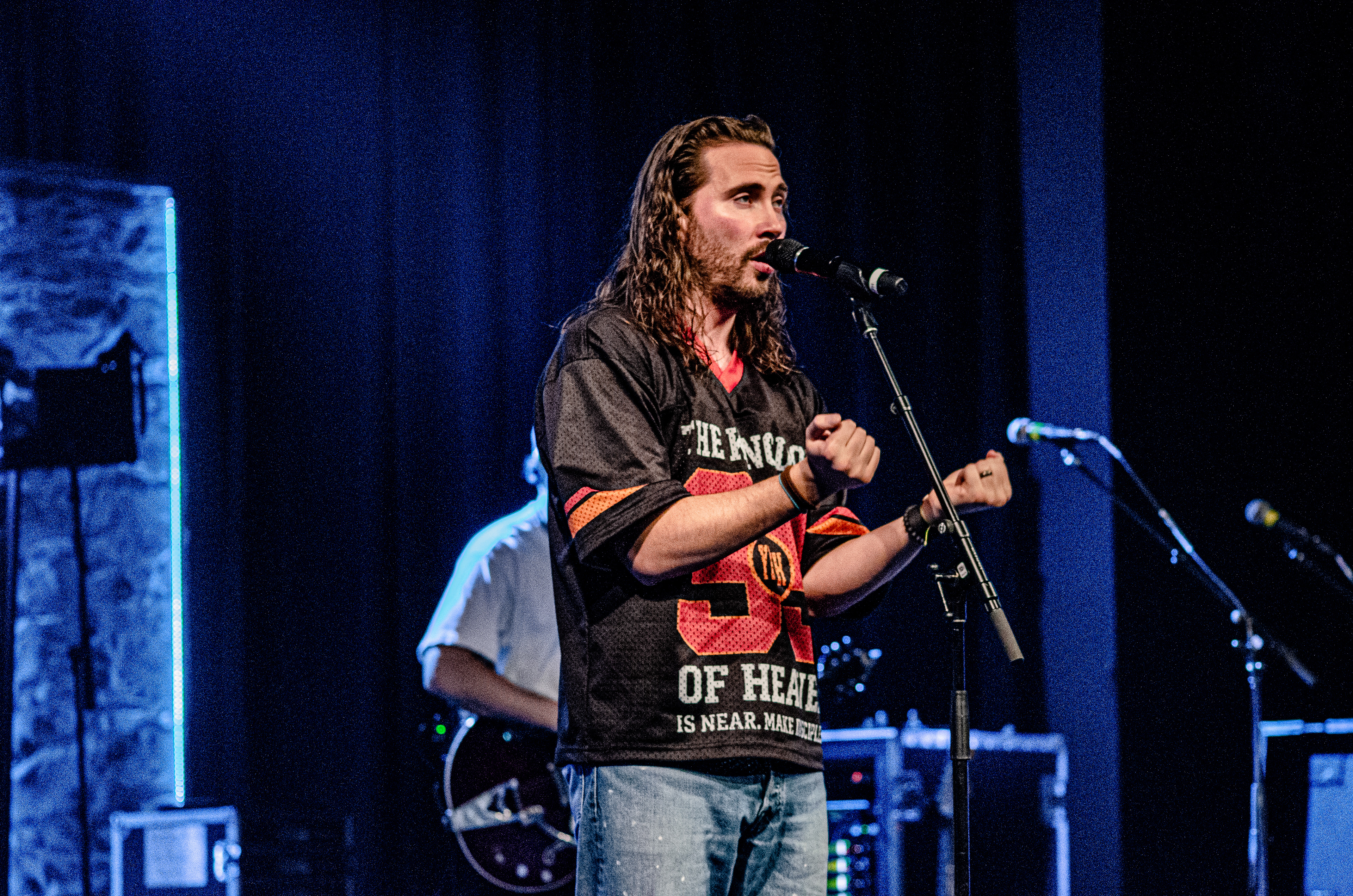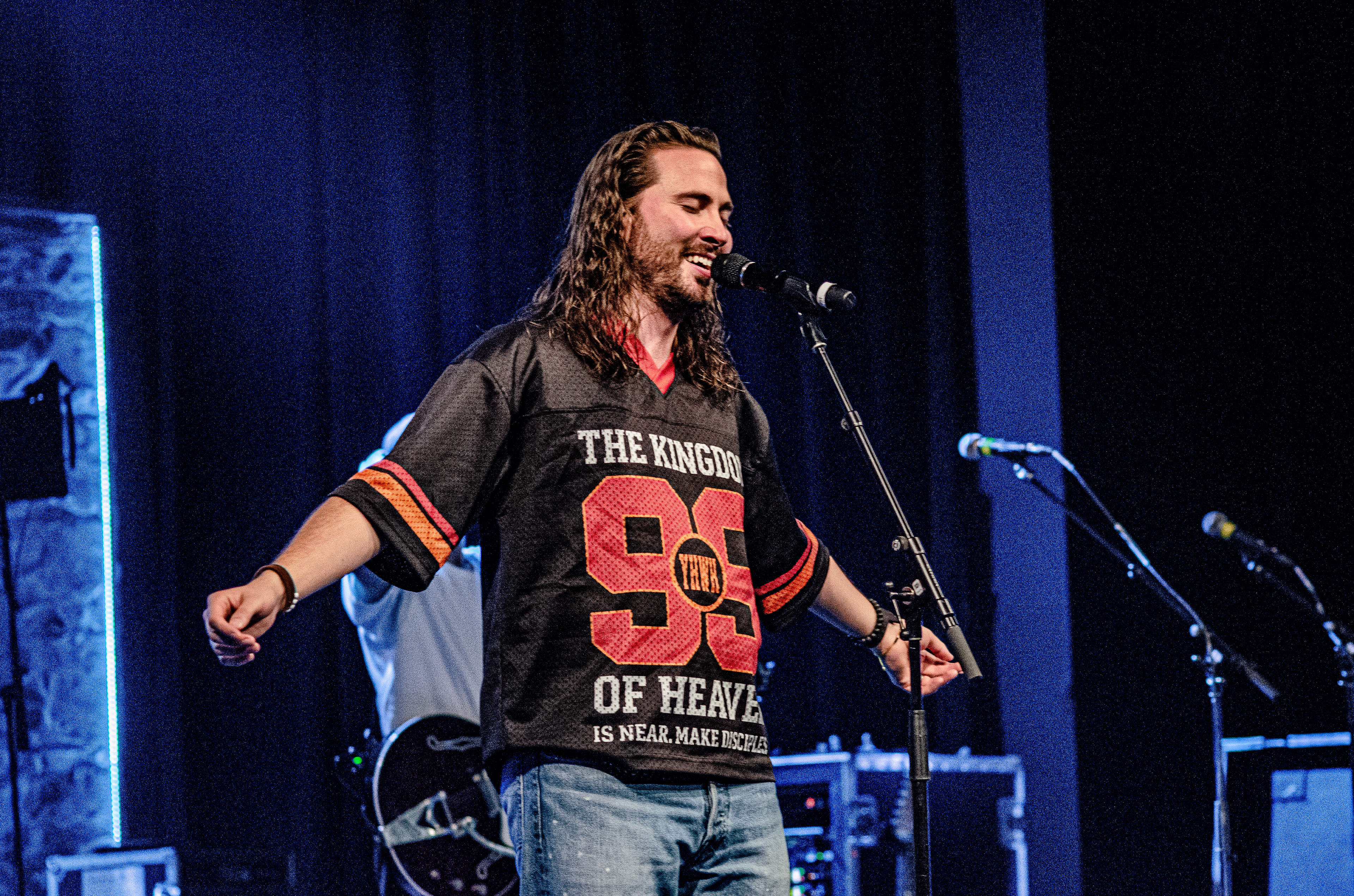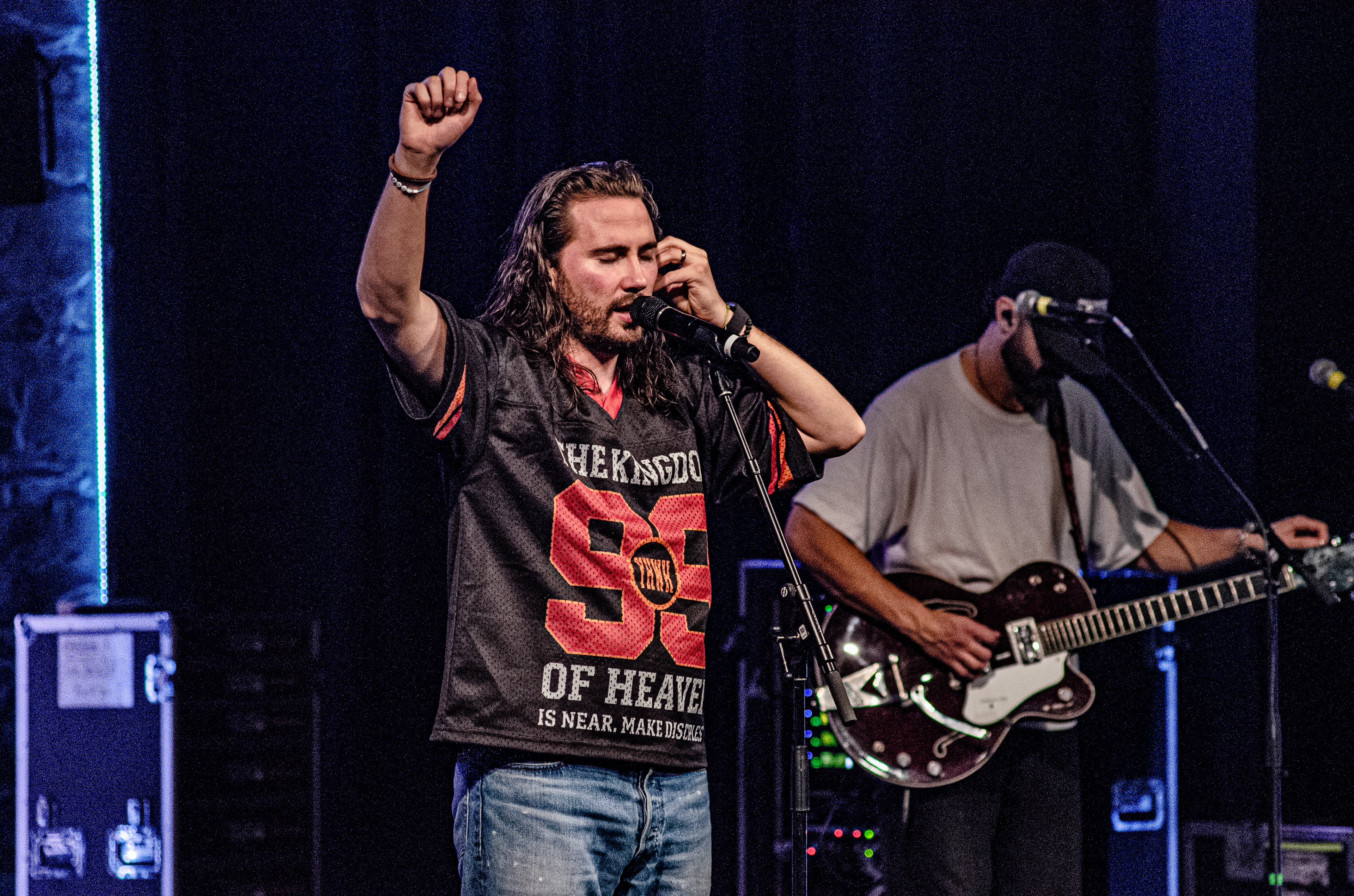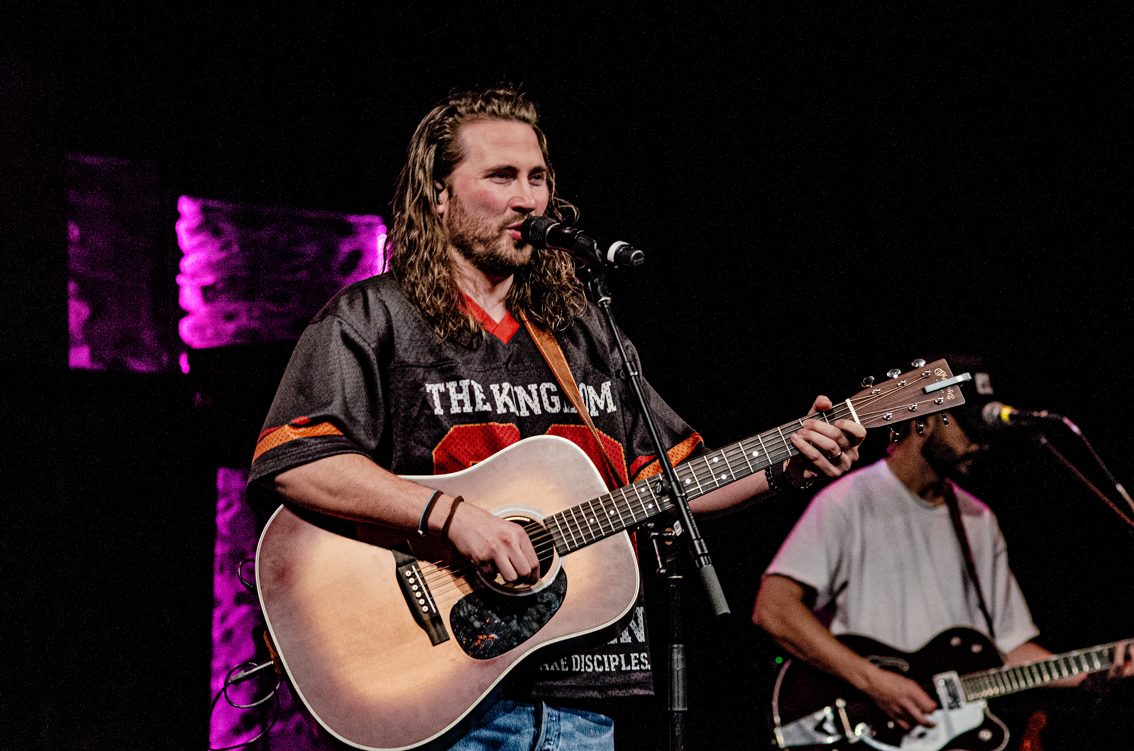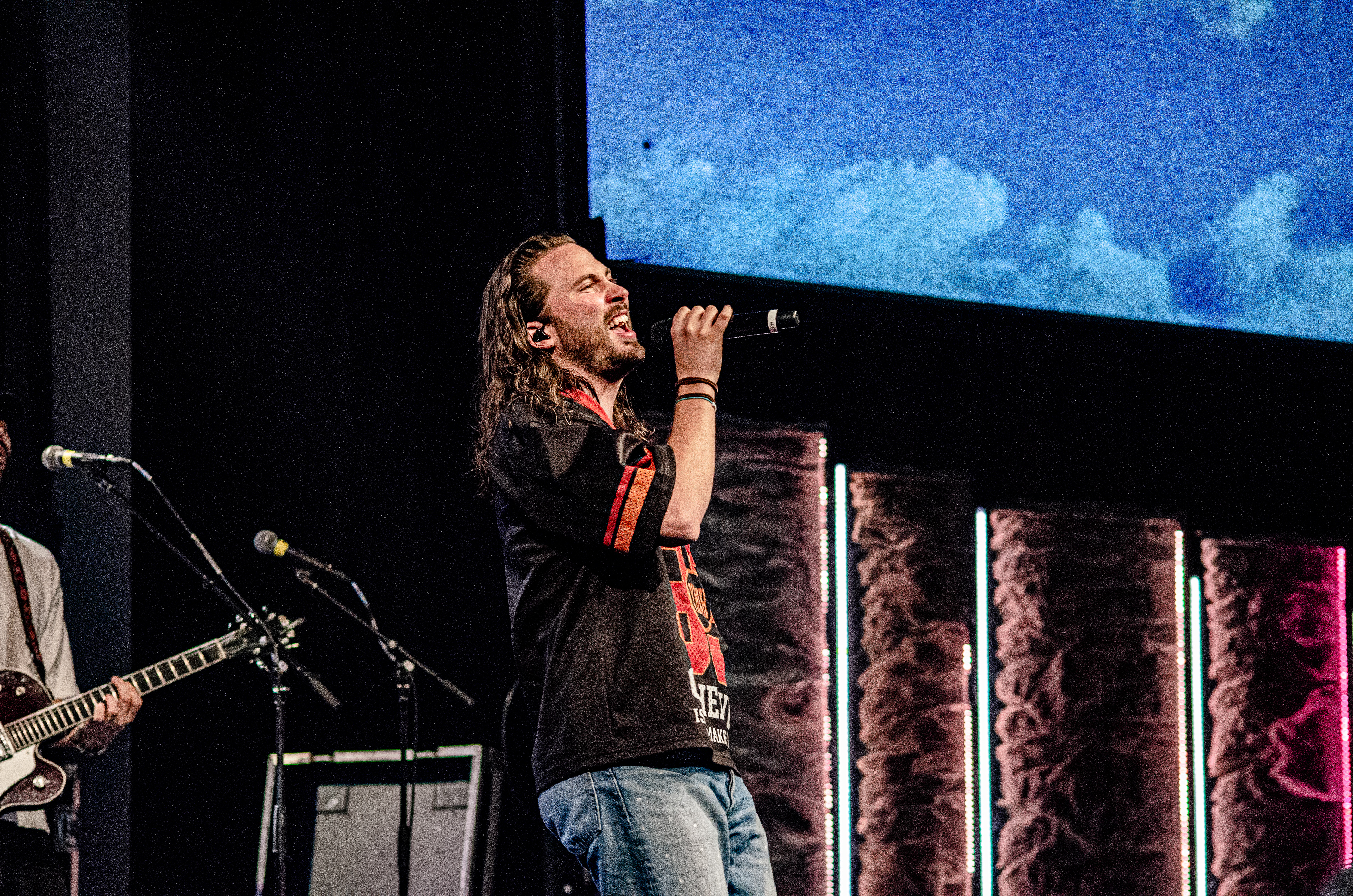 Once Seph took to the stage, the room filled with interchanging blue and orange lights, alongside unmatched vocals. The sound of his acoustic guitar vibrated from floor to ceiling, and the audience joined in as they collectively sang to the opening songs “Running Back To You” and “Steady Love”. Seph acknowledged the fact that his name is complicated, humorously saying that it’s easy to remember by saying “Schlueter Peter”. He also joked about how he is like Brandon Lake, calling himself “Brandon River” (also referring to himself as “Temu Brandon Lake”). He played some newer songs, including collaborations “Already On The Way (with Benjamin William Hastings) and “Cling To The Cross” (with Matt Maher). Charles Weems joined Seph on stage for the latter, offering vocals that complemented the song well. Seph’s newly teased song, “Valley Of Worship”, was included in the set, proving to be one of his best, as he stated “you can build an altar in the valley, because He’s in it with you there”.