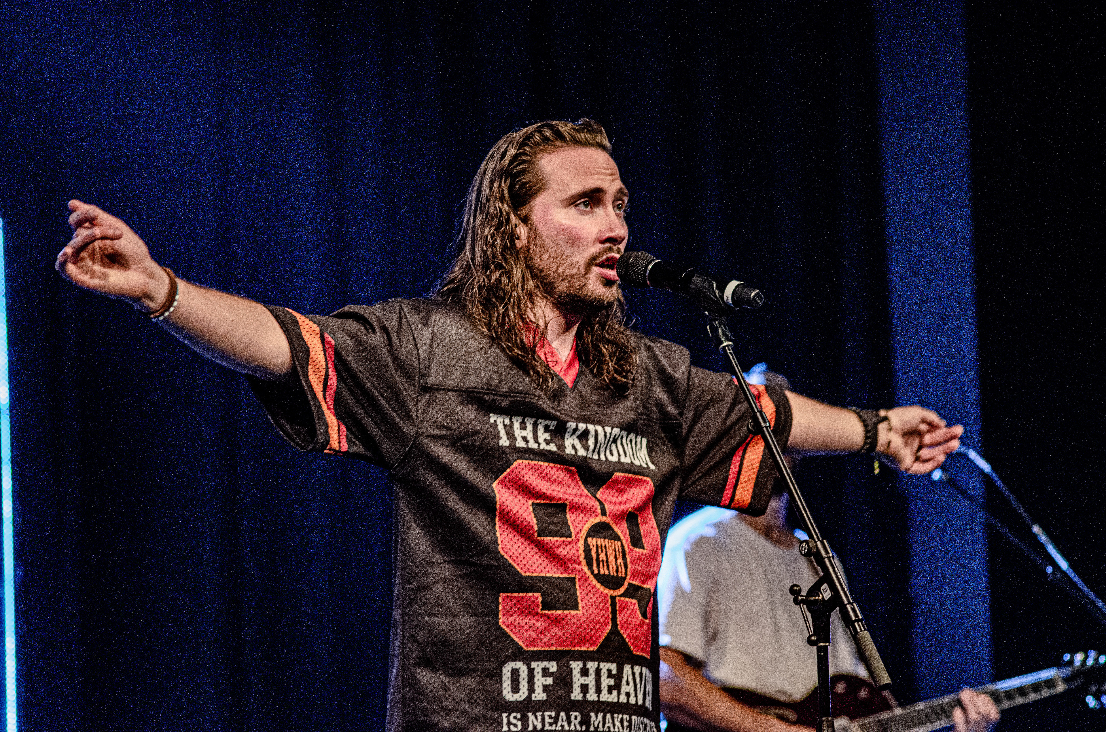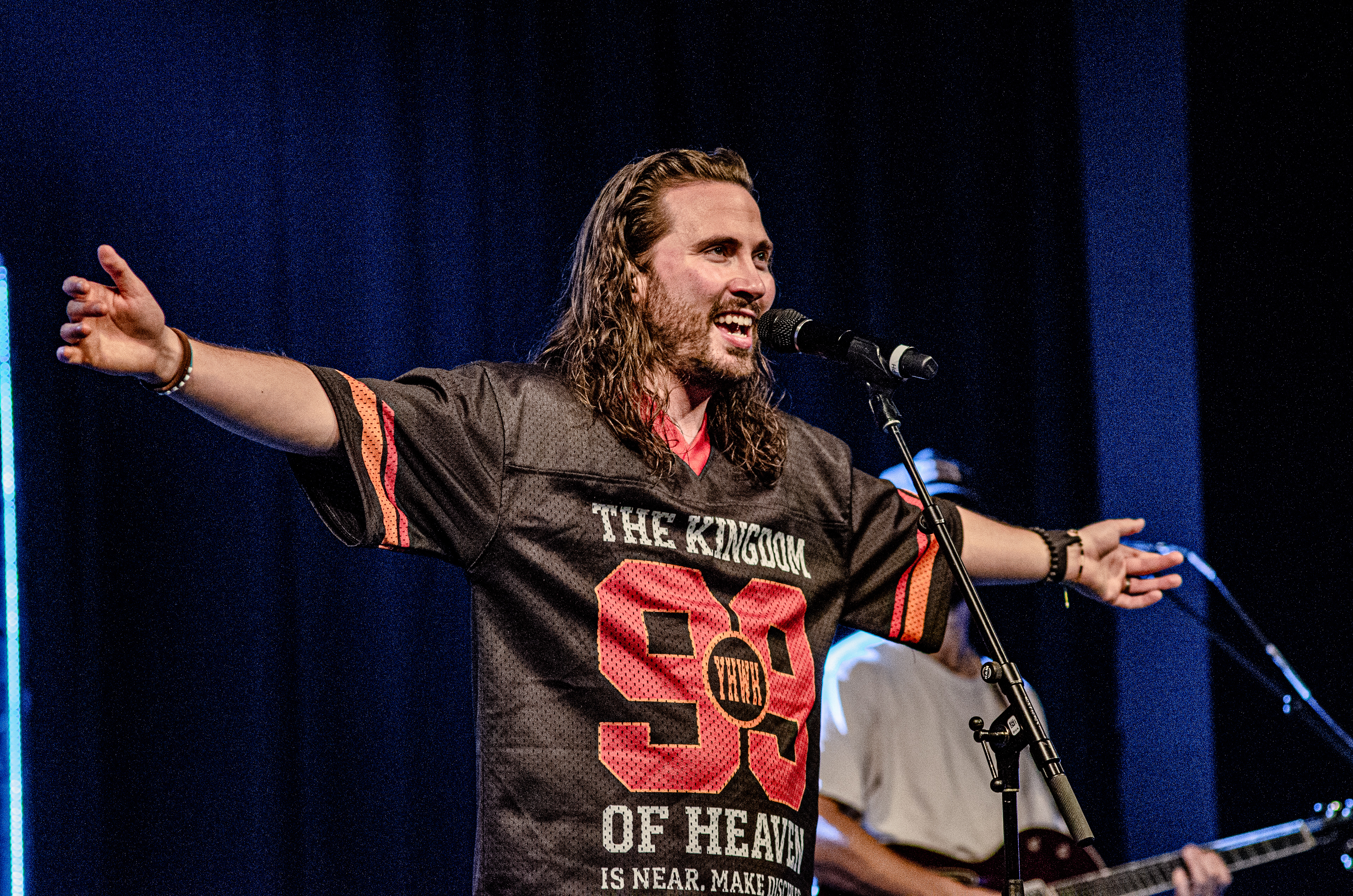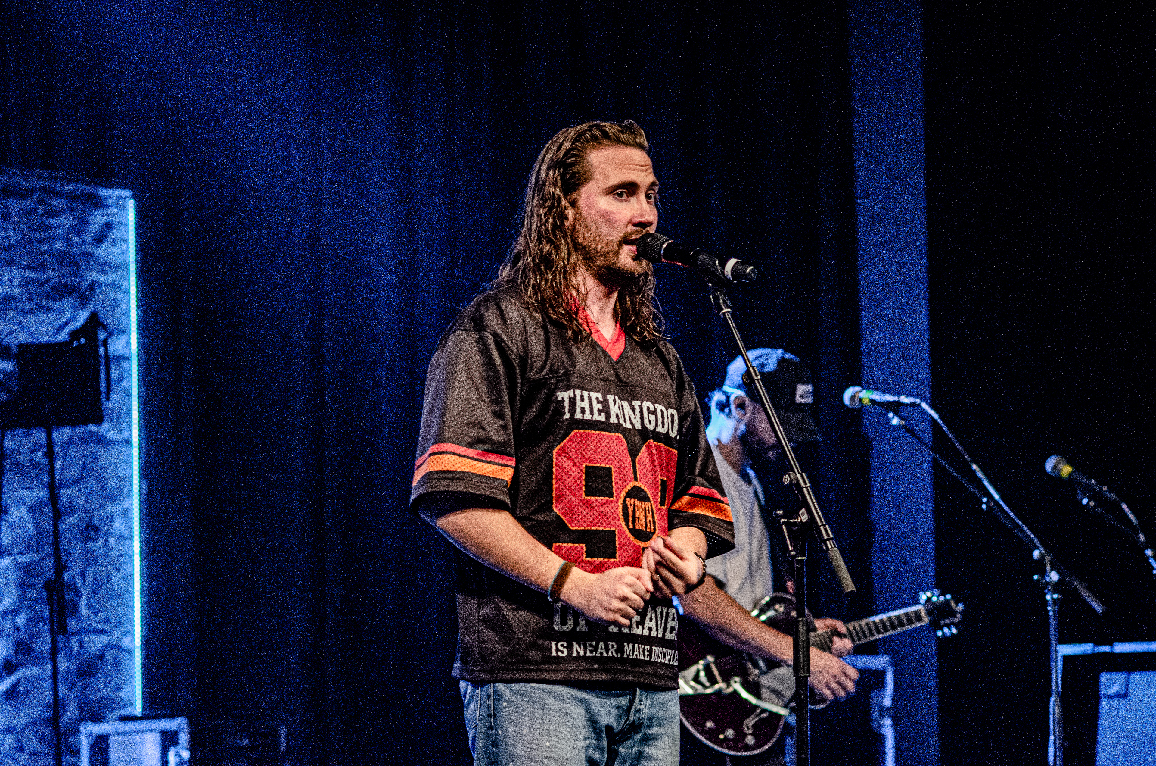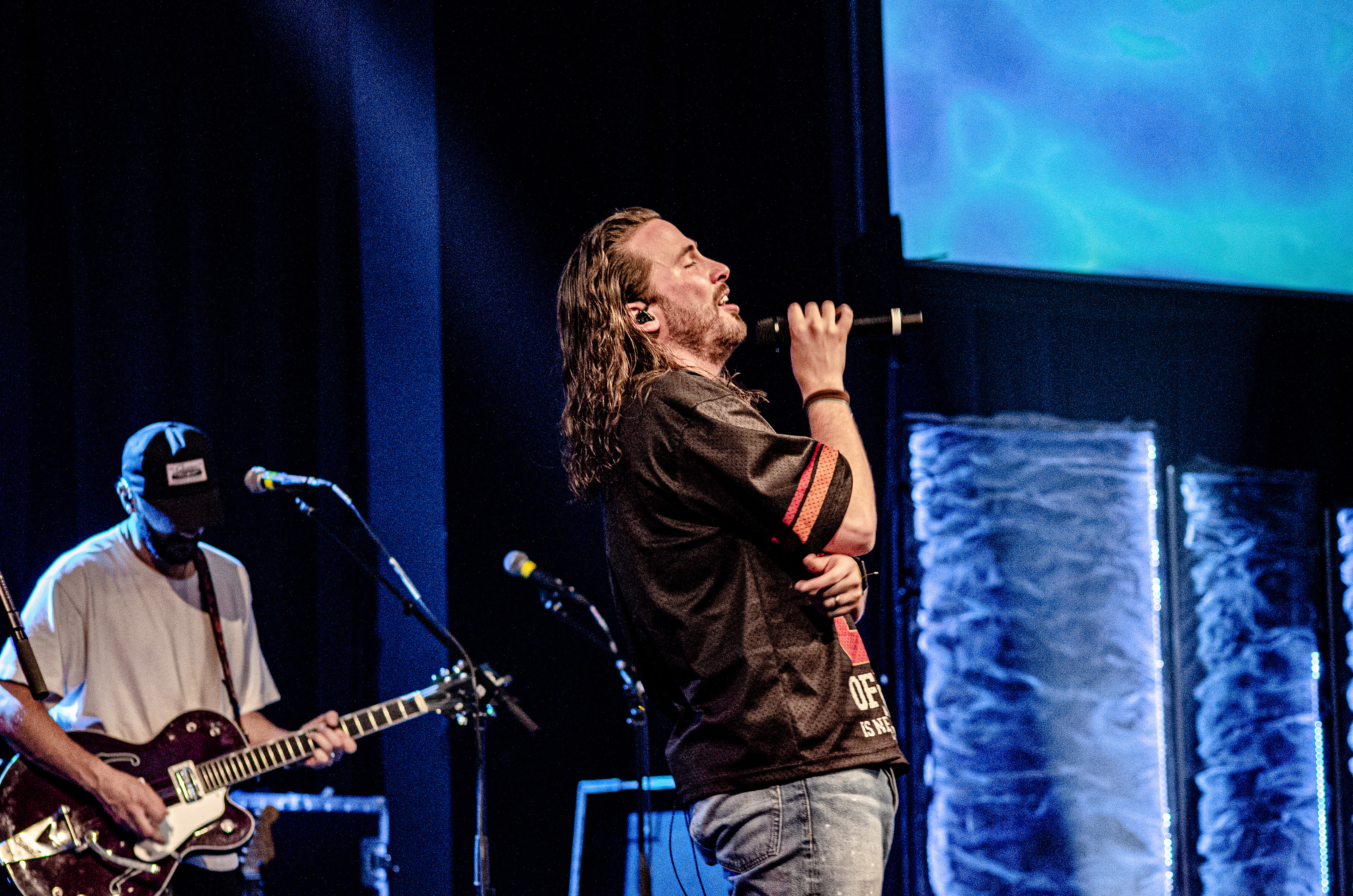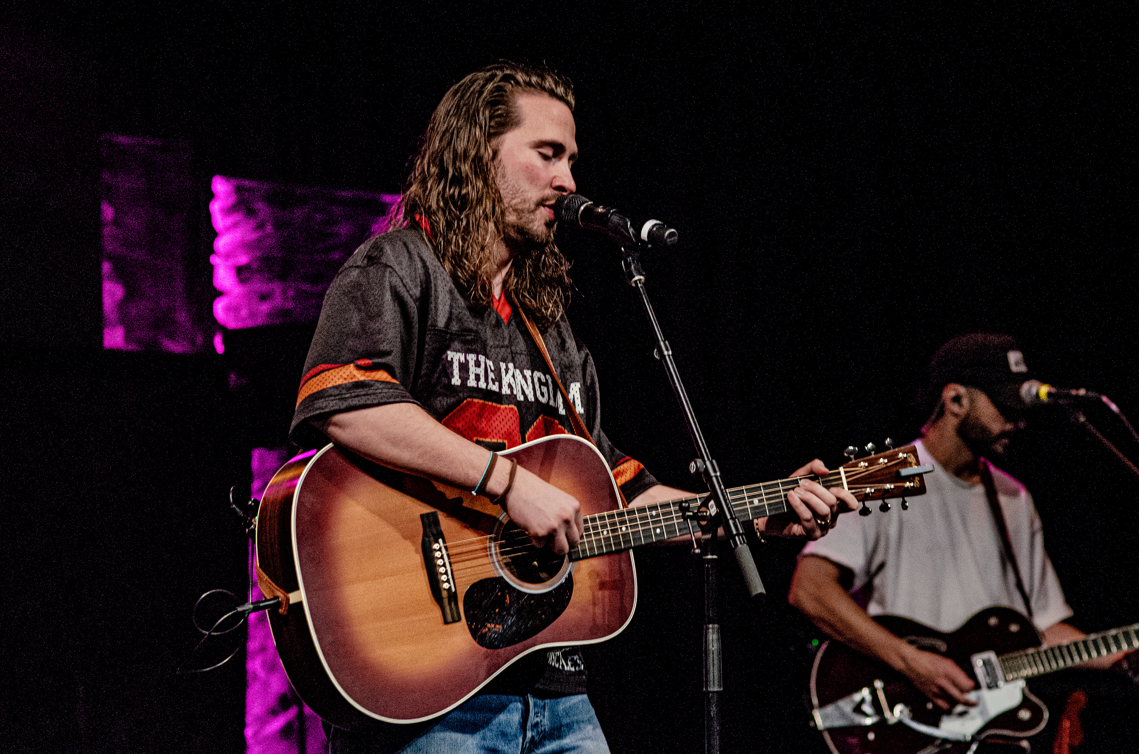 Once Seph took to the stage, the room filled with interchanging blue and orange lights, alongside unmatched vocals. The sound of his acoustic guitar vibrated from floor to ceiling, and the audience joined in as they collectively sang to the opening songs “Running Back To You” and “Steady Love”. Seph acknowledged the fact that his name is complicated, humorously saying that it’s easy to remember by saying “Schlueter Peter”. He also joked about how he is like Brandon Lake, calling himself “Brandon River” (also referring to himself as “Temu Brandon Lake”). He played some newer songs, including collaborations “Already On The Way (with Benjamin William Hastings) and “Cling To The Cross” (with Matt Maher). Charles Weems joined Seph on stage for the latter, offering vocals that complemented the song well. Seph’s newly teased song, “Valley Of Worship”, was included in the set, proving to be one of his best, as he stated “you can build an altar in the valley, because He’s in it with you there”.